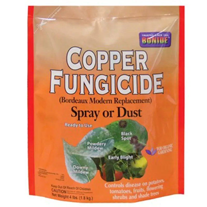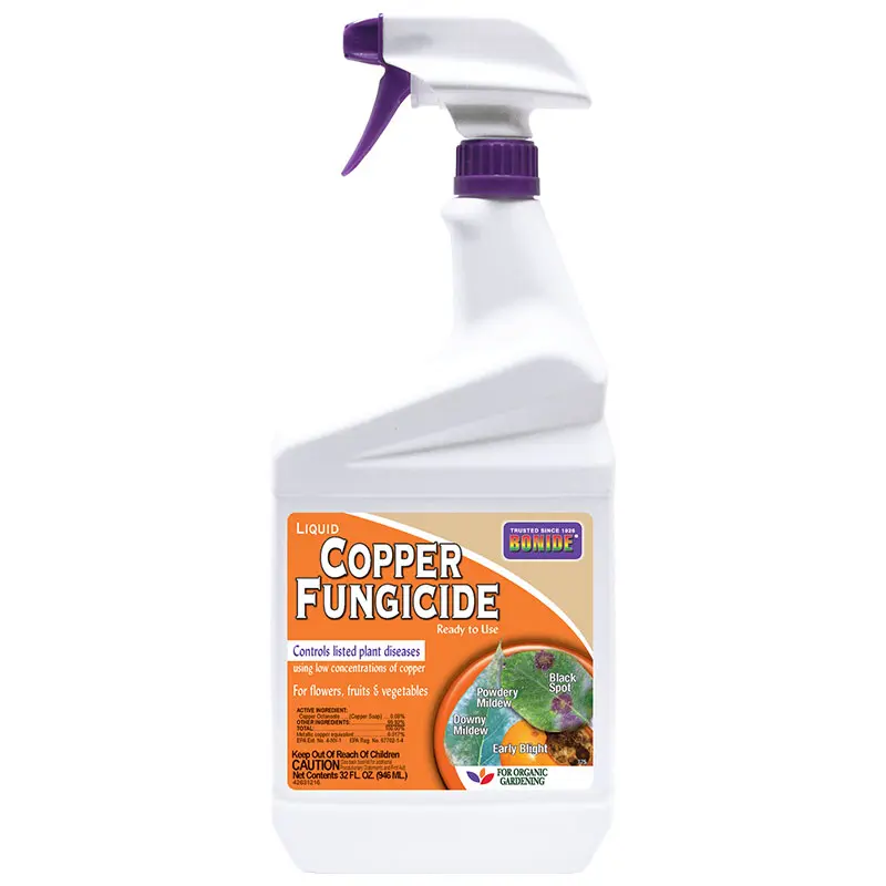 Copper-based fungicide for use in organic gardening. Helps suppress and control diseases like brown rot blossom blight, downy and powdery mildew, peach leaf curl, fireblight, rust, leaf spot, and more — for fruit trees, berry plants and vines, vegetables, and flowers. Ready to use. Label includes instructions for application as a dust or as a spray. Intended for use as a modern replacement for bordeaux.