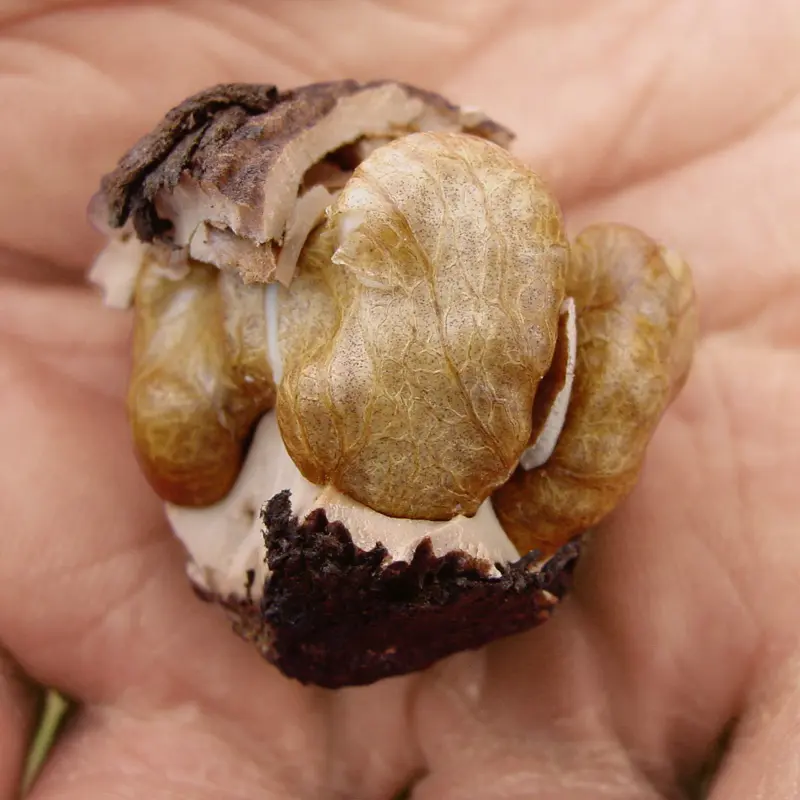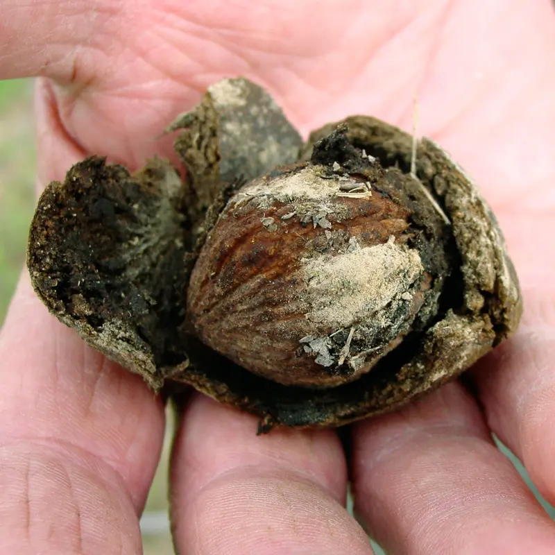 Perfect for lovers of black walnuts. This variety produces huge crops of light-colored, high-quality, delicious nuts that crack in large segments and offer a superior nutmeat-to-shell ratio. Thin husks slip off easily, without the usual mess. Matures to be 40 to 60 feet tall. Heat-tolerant. Ripens in late September. Grafted. Self-pollinating. Juglans nigra